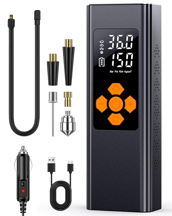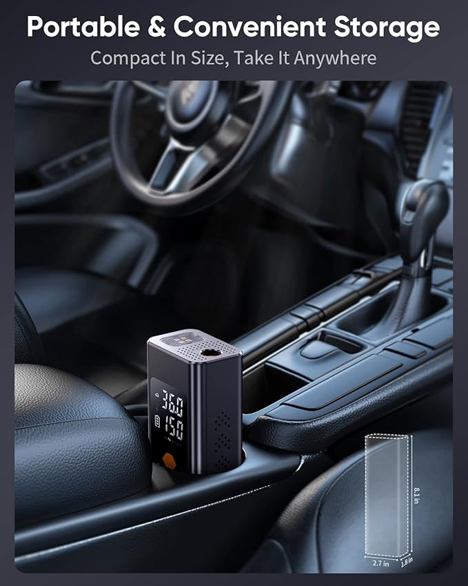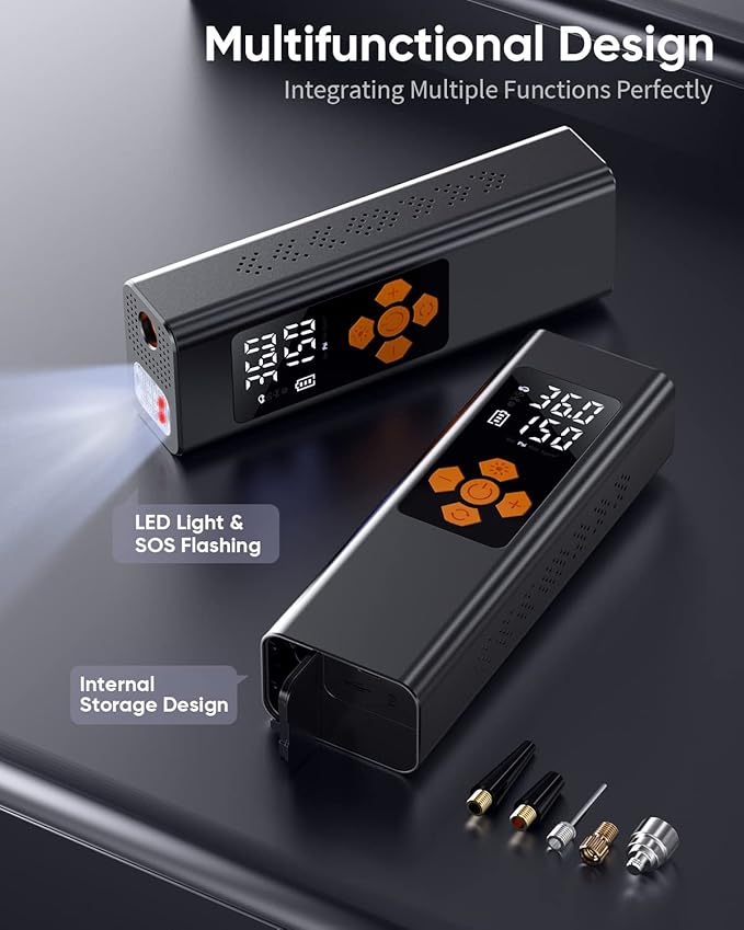 Compressor de Ar Portátil Digital 150 PSI – Sem Fio com Lanterna SOS