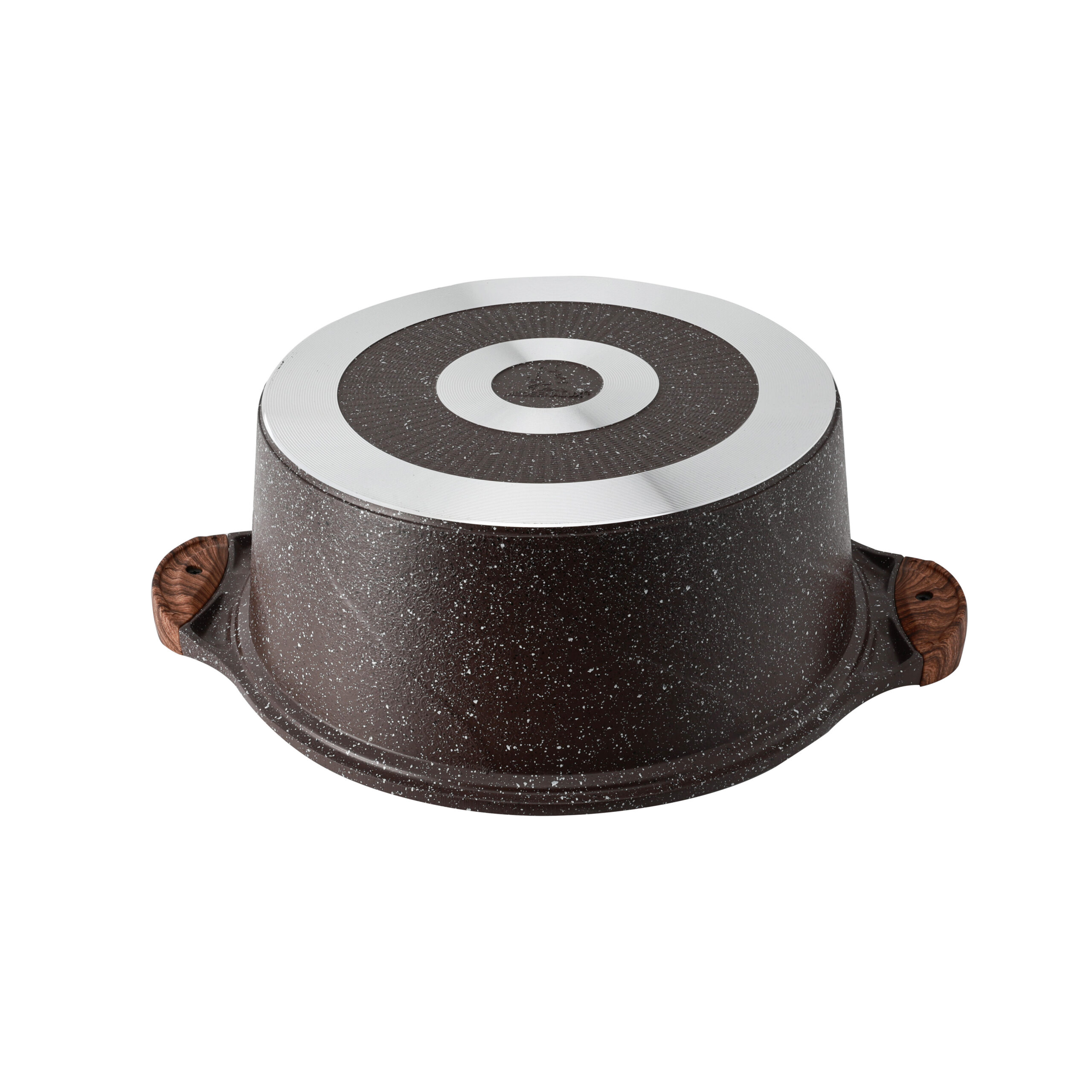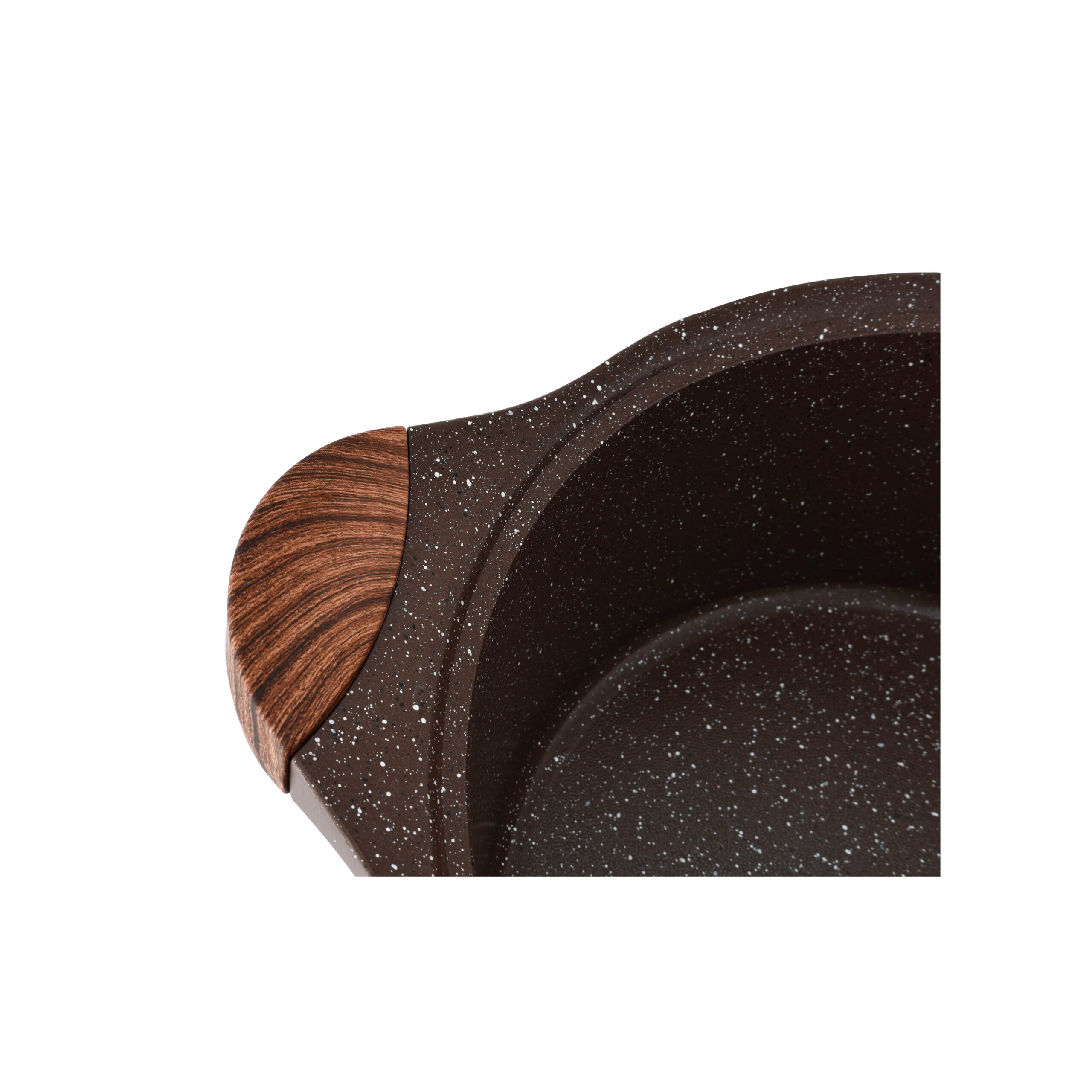 As alças com acabamento em madeira proporcionam um toque natural e confortável no manuseio, enquanto a tampa de vidro temperado permite acompanhar o preparo sem perder calor ou vapor, garantindo mais controle e eficiência no cozimento.